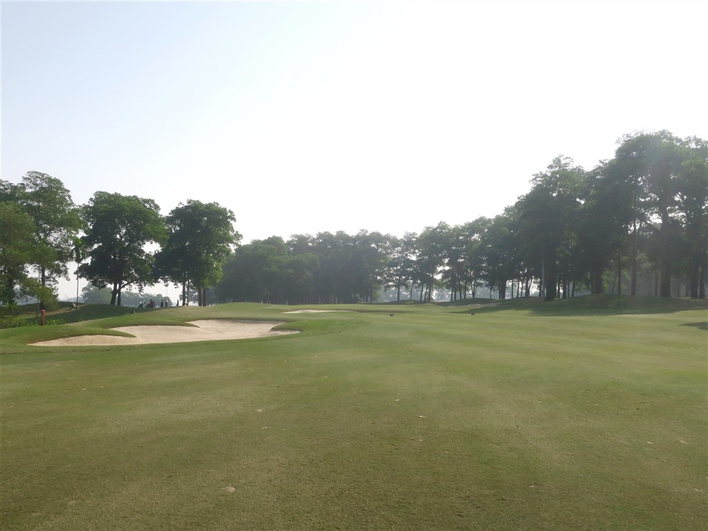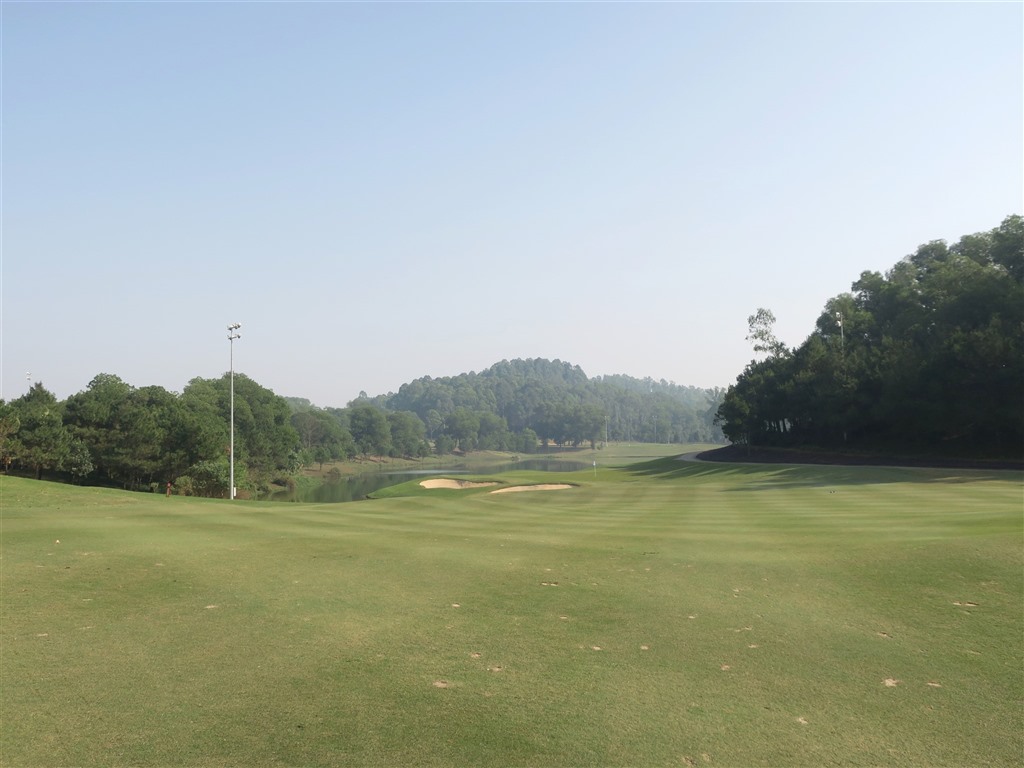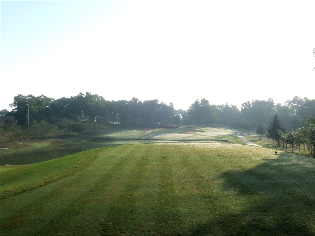 左ドッグレッグ。ティショットでは右サイドの池が効いてくる。セカンドは池越えの少し打ち上げになり、グリーンの左右手前に2個の深いバンカーと奥のバンカーが配されている。強い受けグリーン。