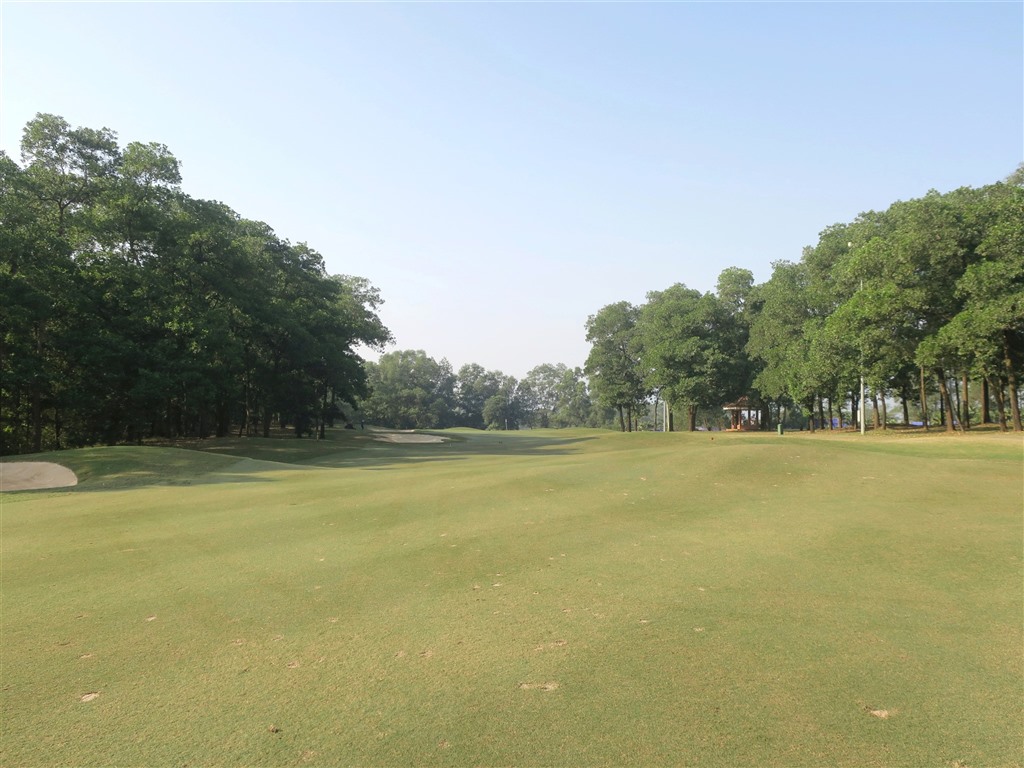 左右に林が続く、やや左ドッグレッグ。ティショットでは左サイドに2個のFWバンカーがある。セカンド地点からも左に曲がっている。グリーンの左サイドと右手前はバンカーでガードされ、グリーンは木立に囲まれている。少し受けグリーン。