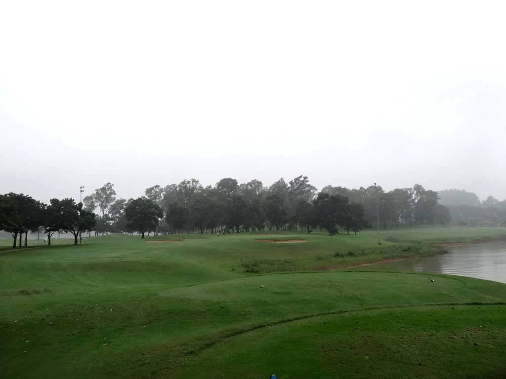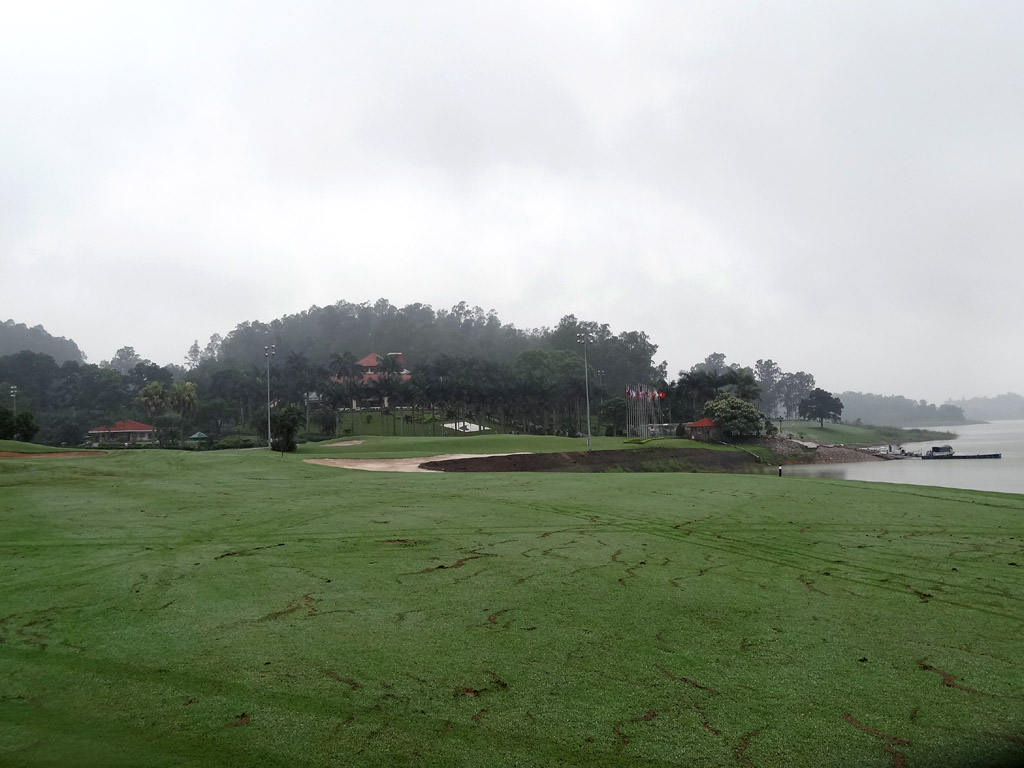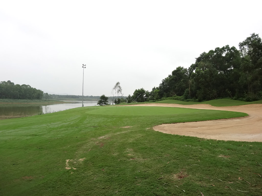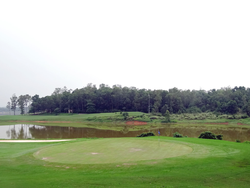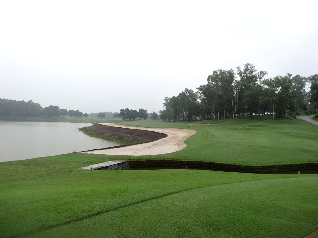 ハノイで最も古い(1993年オープンで世界的には新しいが)ゴルフ場でハノイの日本人の間では最も馴染みのあるゴルフ場。通称〝ドンモー“。湖に浮かぶ島の上に3コースが造られ、高低差の激しいマウンテンビューコース、湖の周りにレイアウトされたレイクサイドコースと、戦略姓の高いキングスコースがある。レイクサイドコースはドンモー湖に浮かぶ島に位置し、18ホール中13ホールで水が絡み、湖の周りに各ホールが点在する。マウンテンビューコースと比べて距離はそれほど長くないが、戦略的に配されたウォターハザード、バンカーによりなかなか手強いコースに仕上がっている。雨天だったが、風光明媚な山と湖畔の景色が良かった。