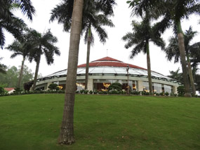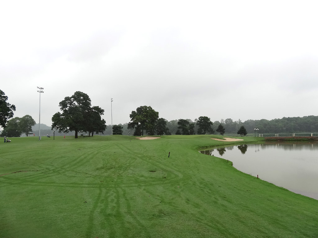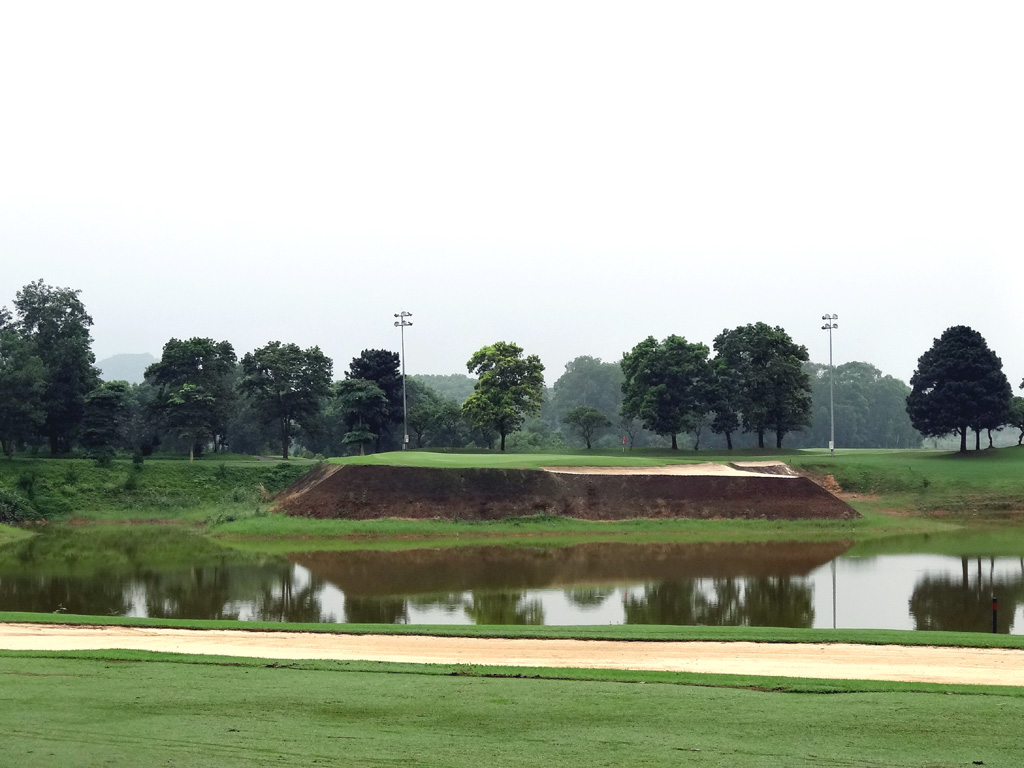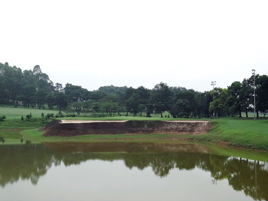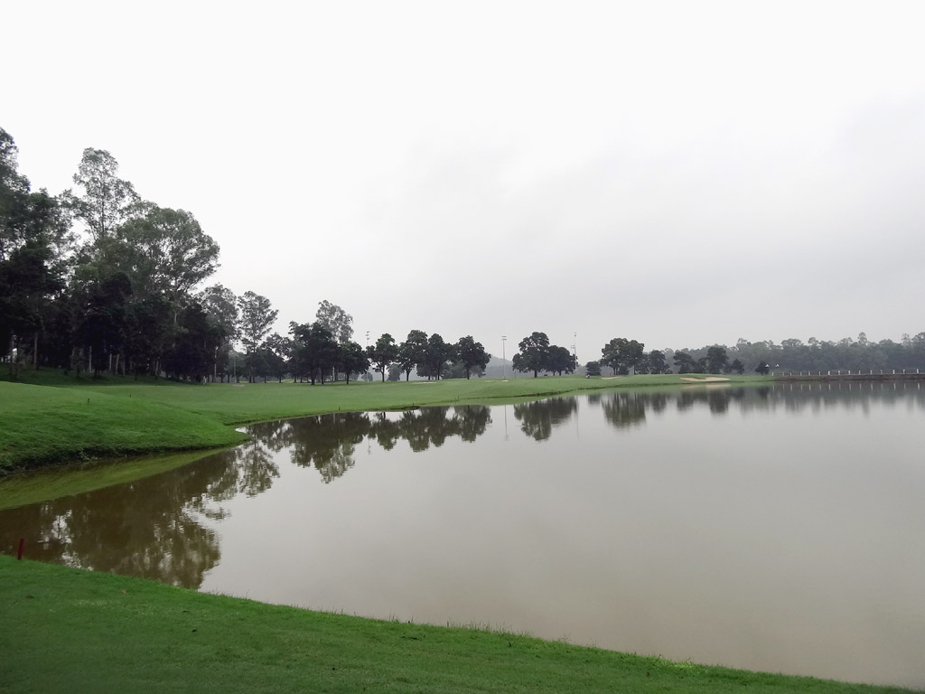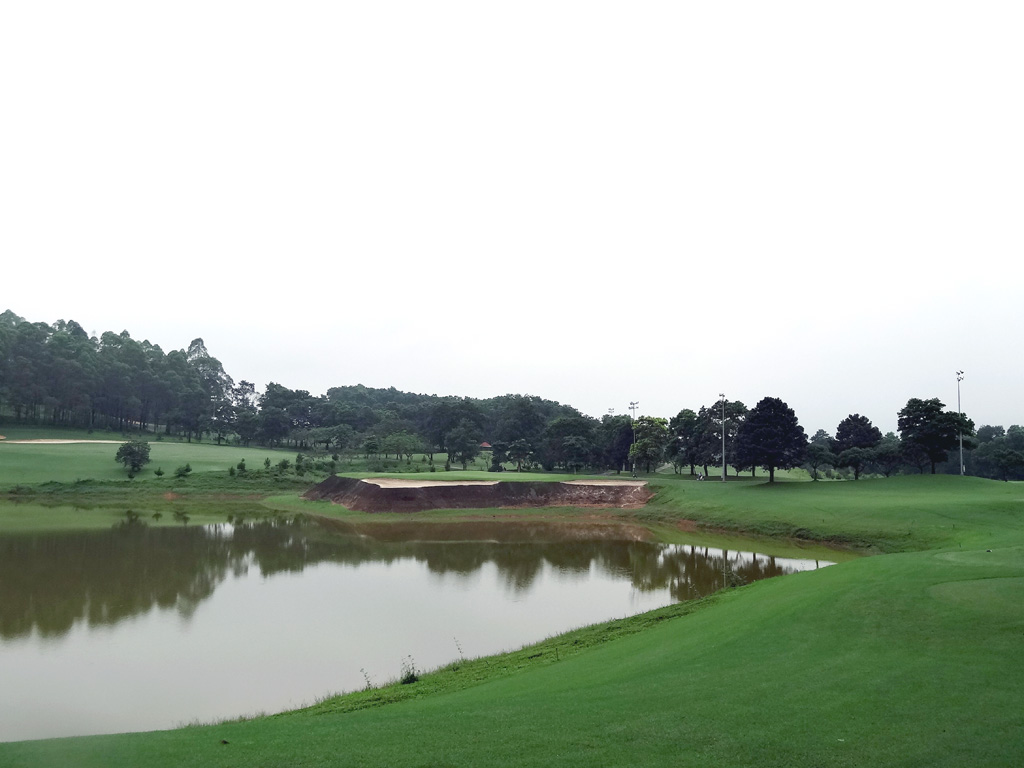 ハノイで最も古い(1993年オープンで世界的には新しいが)ゴルフ場でハノイの日本人の間では最も馴染みのあるゴルフ場。通称〝ドンモー“。湖に浮かぶ島の上に3コースが造られ、高低差の激しいマウンテンビューコース、湖の周りにレイアウトされたレイクサイドコースと、戦略姓の高いキングスコースがある。レイクサイドコースはドンモー湖に浮かぶ島に位置し、18ホール中13ホールで水が絡み、湖の周りに各ホールが点在する。マウンテンビューコースと比べて距離はそれほど長くないが、戦略的に配されたウォターハザード、バンカーによりなかなか手強いコースに仕上がっている。雨天だったが、風光明媚な山と湖畔の景色が良かった。