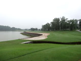 右ドッグレッグの距離のあまりないミドル。ティグランドからグリーンまで右サイドは全て湖。グリーン両サイドにバンカーが配され、グリーンは手前半分が受けている。