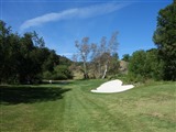 左ドッグレッグ。ティショットは少し打ち下ろしで、谷越えには215ヤードのキャリー、左FWバンカー越えには260ヤードのキャリーが必要。グリーンは砲台で受けている。グリーンの左に2つのバンカーが配されている。
