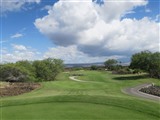 打ち下ろしの短いショートで名物ホール。グリーンの円周を背の高い溶岩が縁取り、ローマ風の円形野外劇場のように見える。グリーンは3個のバンカーでガードされ、手前のガードバンカーの中には、なんと巨大溶岩が聳え立つ。易しいが、景観がエキゾチックでワイルドなホール。 |