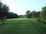 | ストレートホール。ティショットでは、左は池と右のOBが迫っており、落とし所が限定される。グリーンは林にすっぽりと囲まれ、一種、幽玄な雰囲気をかもしだしている。グリーン手前をガードしているバンカーが効いて来る。 |