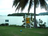| 海岸線と平行して走るショートホール。グリーンはなんと50ヤードの長さがある。グリーンとグリーン右の海の景観は素晴らしい。ホールを囲むように植えられているヤシの木立が南国情緒を醸し出している。しかし、ホール右側のヤシは全てない方が良いだろう。そうすれば、雄大な海への視界が広がり、このホールが一段とダイナミックになる。 |