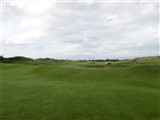 ストレートホール。ティショットでは左右に背の高いデューンが並び落し所は狭いが、FW左半部に打たなければ前方の右サイドから迫っているデューンの丘でグリーンが見えない。グリーンは縦に細長い。 |