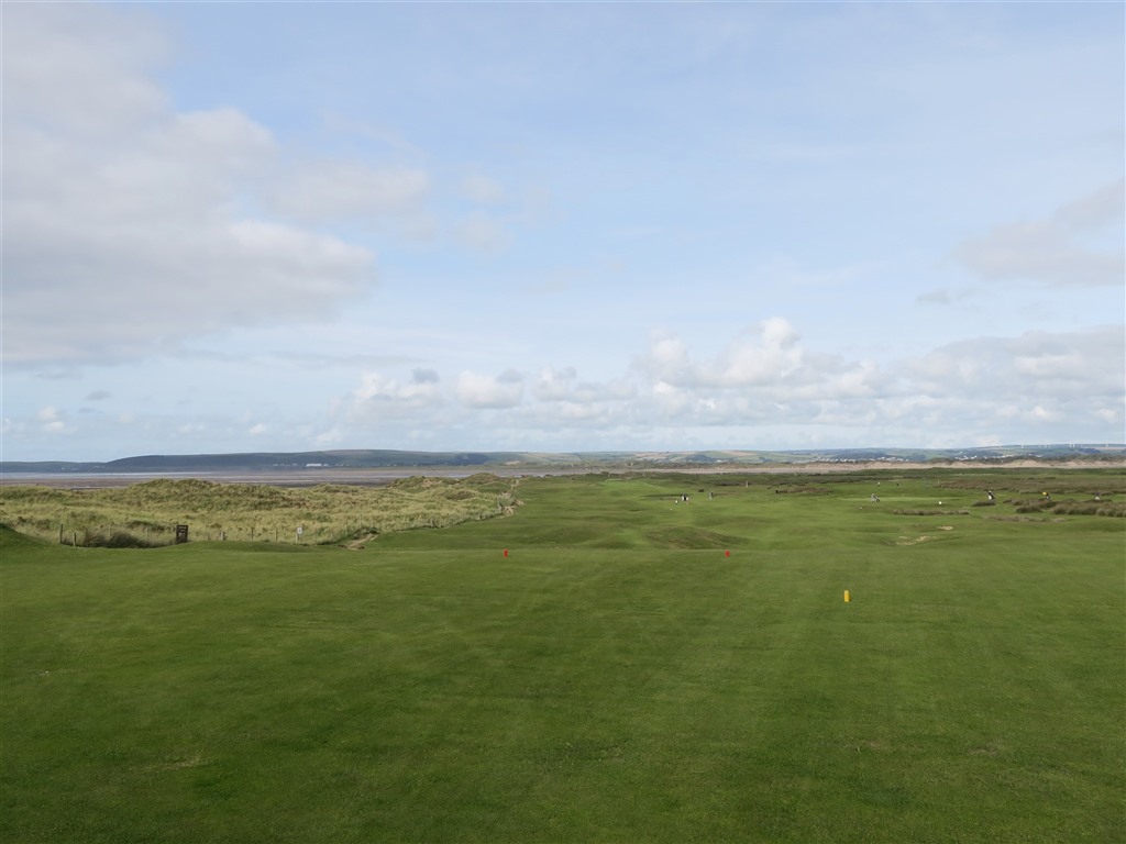 クラブハウスからコースを見渡すと、樹木とか障害物が一つも無くフラットなリンクスコースで、ホールの位置を限定するのが難しいぐらい単調に見える。しかし、実際プレーしてみると、フラットなのは1番、2番、18番ホールだけで、3番から17番まではホールには大小の起伏があり凸凹が多く、面白いホールが続く。”シーラッシュ“というイグサ系の植物が帯状に広がりハザードを形成している。コースは4つの部分から構成されている。初めの2ホールはとても広く、次の6ホールは海に沿って進み、その後シーラッシュのブッシュが絡んでくるホールをいくつかプレーして、最後の方のホールはまた広くなってくる。全体的にグリーンの曲線、傾斜の造形は良い。海沿いのホールではコースと海を隔てる堤防“ぺブルリッジ”が延々と続く。これは天然の奇跡で直系1メートル弱の無数の天然石が積み重なり、自然の堤防を造っている。