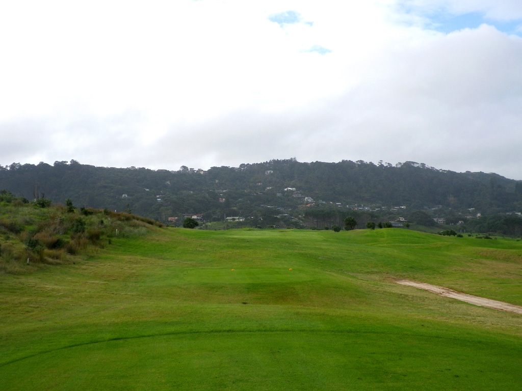 | フェアウェイは右傾斜しているストレートホール。ホール奥の小山の景色が魅力的。 |