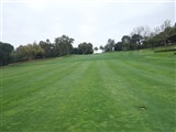 左ドッグレッグの打ち上げ。ティショットは左にOB。FWは広いが、FW右半分に打つのが良い。砲台グリーンは5個のバンカーでガードされている。受けグリーンで上からのパットは速い。 |