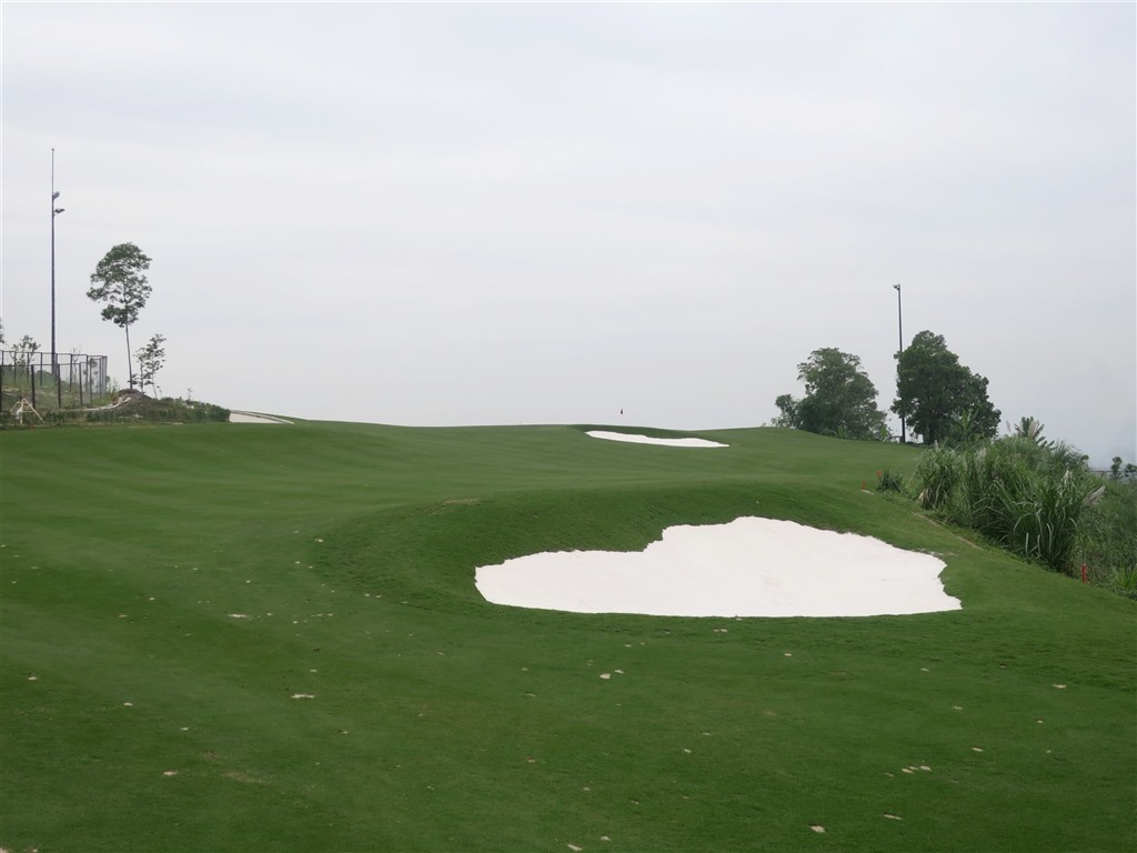 それでも急な打ち上げ、打ち下ろしのホールが多く、1番358ヤードの打ち下ろしは、あまりにも急な下り勾配なので、ロングヒッターならFWウッドでグリーンまで届くし、14番のパー5ではティからグリーンまで100メートル近くの打ち下ろしになる。2番パー4、3番パー4は垂直に上っていると思うぐらい、打ち上げになり、4番パー5のティショットは30メートぐらいの打ち下ろし。というようにローラーコースターのルーティンが最後まで続く。カートを使用してもホール間のインターバルが長すぎるのもいくつかある。無理があるルーティングだけでなく、コースのメンテナンスも正直あまり良くない。ただこのコースは各ホールの印象度、ルーティング、レイアウトの良さで判断するのでなく、リゾートコースとしてハロン湾の絶景を味わうのと、他のコースではあまり経験できない豪快な打ち下ろし、打ち上げホールを楽しむようないくつかのホールの個性を評価したい。
