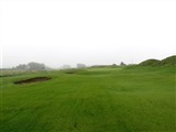 | 左ドッグレッグの難しいミドル。ティショットは少し打ち下ろしになり、左右の深いラフと左サイドの2個のバンカーが効いてくる。グリーンは砲台で、左サイドに1個のポットバンカーが配され、右半分はデューンに囲まれている。 |