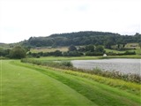 池越えの綺麗なショート。グリーン手前から右サイドは池に面する。グリーンの左サイドと奥にバンカーが配され、グリーン上には大きなコブがある。 |