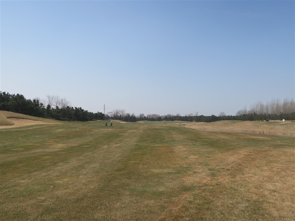 | ストレートの長いロング。グリーンの100ヤードから巨大バンカーがグリーンをガードしている。グリーンは横長で左が高く右傾斜。 |