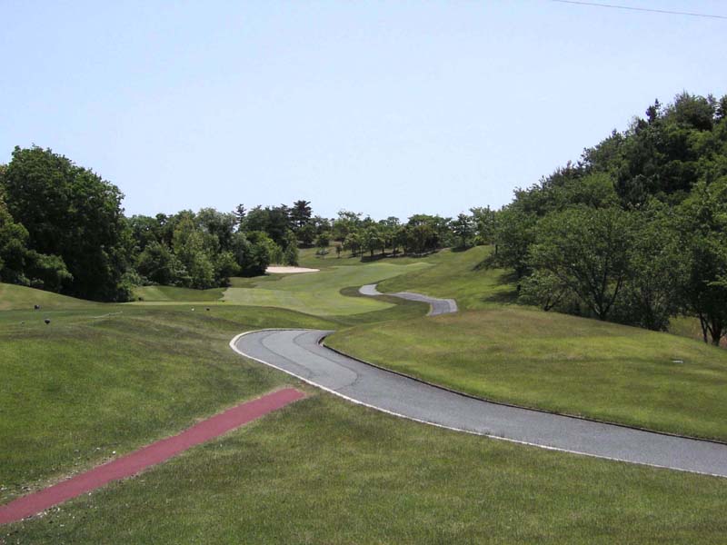 急な左ドッグレッグで2オン可能なホール。フェアウェイは狭く、このホールも左のOBは浅い。難しいティショットさへ乗り越えれば、後のショットは易しい