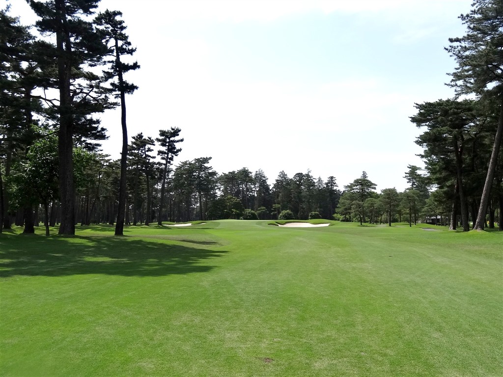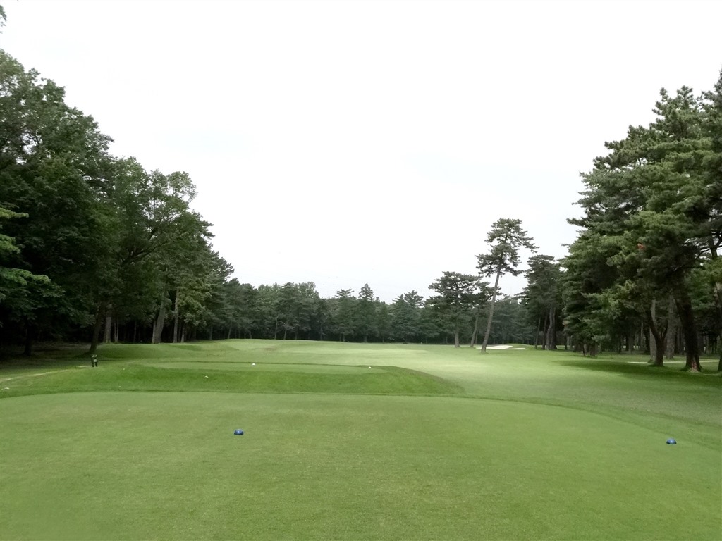 や右ドッグレッグ。右から林が張り出しているので、フェアウェイ左を狙っていきたい。2オンを狙うロングヒッターには、グリーン左手前の小さな池と手前に聳える松の木が効いてくる。この池は昔のサブグリーンをそのまま池にしたようだが、2年前に新しく出来たようには見えず、昔からずっとあったように見え、周囲の景観と見事に調和している。池越えのグリーン左手前のバンカーは小さくあごが高い。また左足下がりのライになりやすいので意外に脱出が難しい。