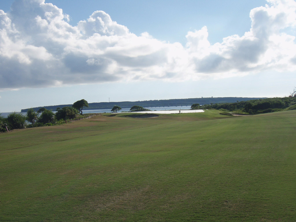 | ほぼストレートなロングホール。ティーショットでは左はOB、右は池になり難しい。サードショットはやや打ち下ろしになり、グリーンは少し左に振られて海に突き出て、バンカーに囲まれたグリーンに向かって打っていく。