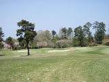 | 左ドッグレッグの短いロングホール。ティーショットは打ち下ろしになり、ティーから250ヤード先の左サイドにあるフェアウェイバンカーが効いており、ティーショットンお落とし所を狭めている。2オン可能なホールなので、最短距離を狙おうとすると、そのバンカーと数本の松の木が待ち構えている。グリーン右手前と左にバンカーが配されている。受けグリーン。