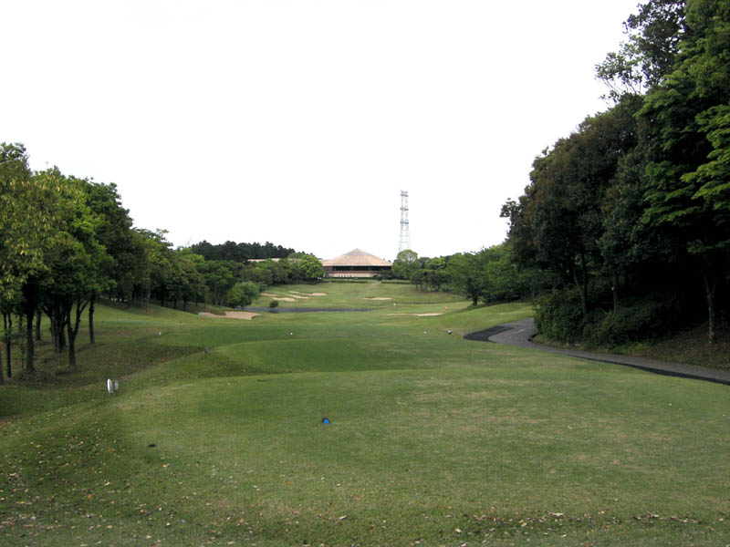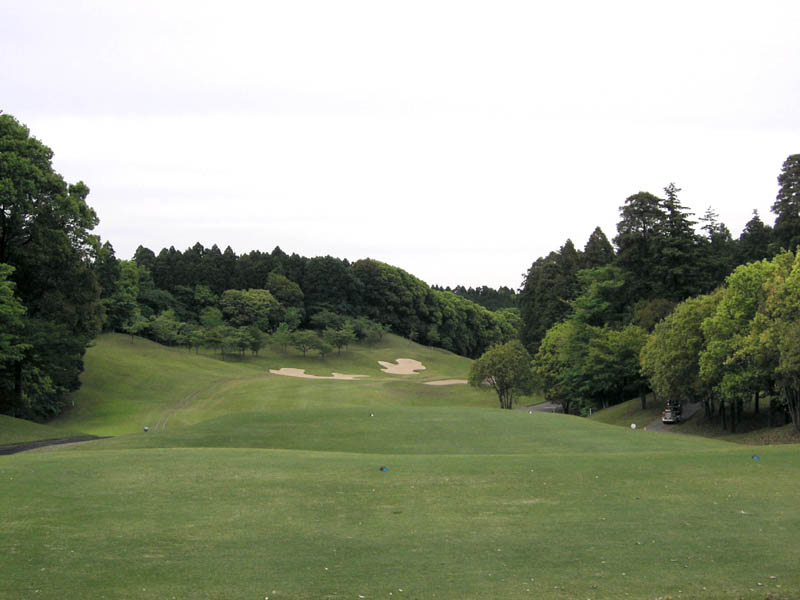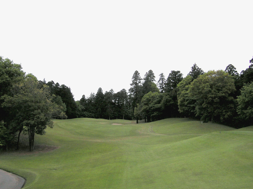| 急な右ドッグレッグの難ホール。左右にOBが配されている。テイショットでは左サイドを狙うのが安全ルートだが、あまりにも左に行き過ぎると、セカンドショット時に、前方の大きな杉の木が邪魔になる。グリーンはとても大きく、微妙なアンジュレーションがある。 | |||