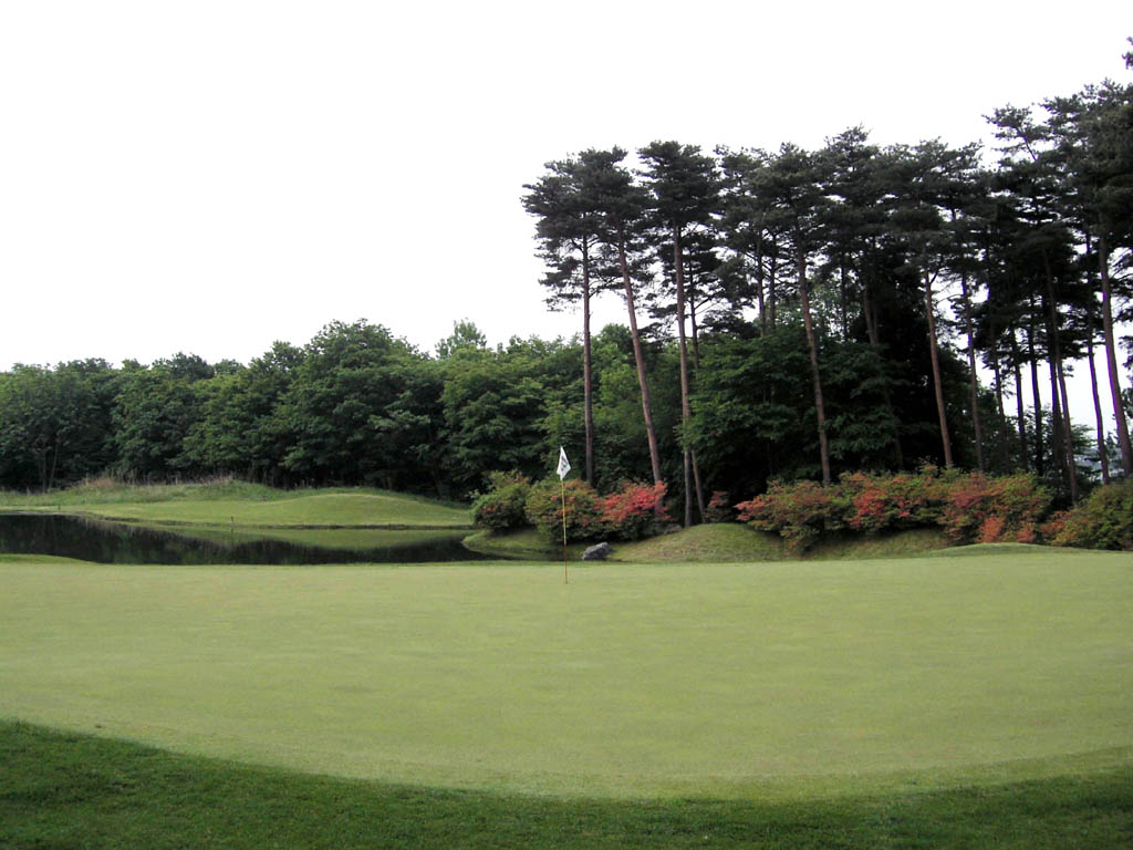 55ヤードと縦に長いグリーンの左サイドは池に面し、グリーンは右から池がある左の方へ傾斜がある。グリーンは手前から順目になり、とてつもなく速い。