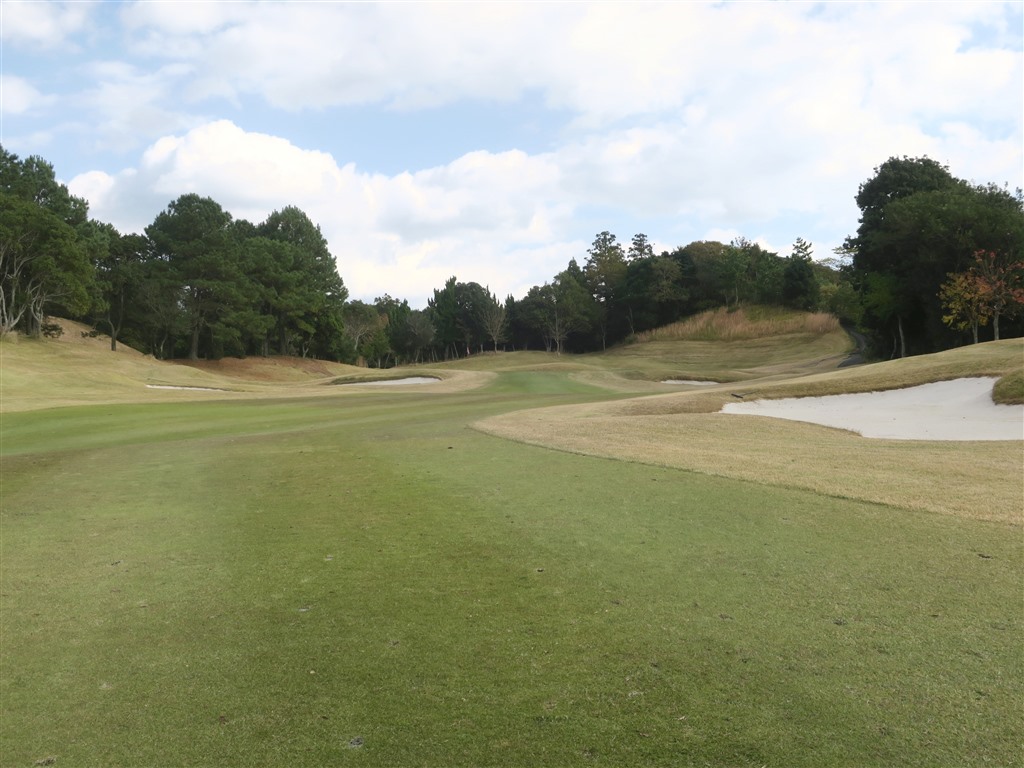 セカンド地点から左ドッグレッグで緩やかな打ち上げになるロング。セカンドはグリーン手前左右100ヤード付近のバンカーが効いていてFWは狭め。グリーンは横に長く、左手前と右にバンカーが配されている。