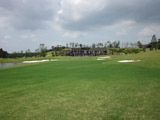 ほぼストレートに打ち下ろしていくミドル。ティーショットは左のフェアウェイバンカーに注意。グリーン右手前に大きな池が広がり、グリーン右サイドは池に面するので、セカンドショットのスライスボールには要注意。グリーン右手前のビーチバンカーが美しい。 |