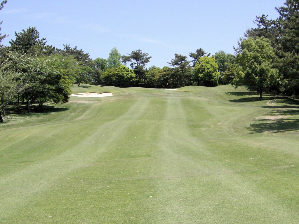 | 松林でセパレートされたストレートなホール。グリーン手前200ヤード地点から打ち上げになり、フェアウェイ幅が狭くなってくる。