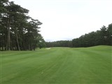 打ち上げの強い左ドッグレッグ。ティショットではドッグレッグ地点の松を避けたFW右半分狙いが良い。セカンドは松の木立越え。グリーンは縦長で強く受けていて、4個のバンカーでガードされている。 |