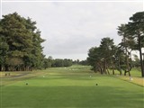 距離のあるショート。グリーン(右側)は円形の少し砲台で、左右にバンカーが配されている。受けグリーン。右手前方向から攻めたい。 |