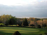 bunker. The green is undulating and double-tiered, so putt is difficult