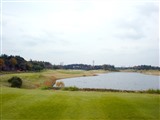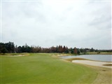 セカンドショット時には、グリーン右横の背丈ほど深いバンカーと池の造形美が印象深くすばらしい。 グリーンは縦に長い3段で、中央がへこんでいる。 |