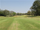 | 軽く右に曲がってから軽く左に曲がるホール。グリーンは砲台で手前をドライクリークが横切り、グリーンの右サイドに面しながら後方に抜けている。グリーンの左と奥にバンカーが配されている。グリーンの左奥にピンが切られるとグリーン左のガードバンカーを越えていかなければならず、グリーンの奥行きもないので難易度は相当増す。 |