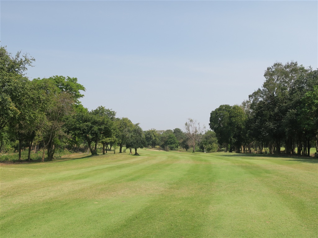 | 初めの400ヤード強はストレートでグリーンまで残り100ヤードの地点から左に曲がっている。グリーンの左はブッシュ、右は1つのバンカーでガードされている。 |